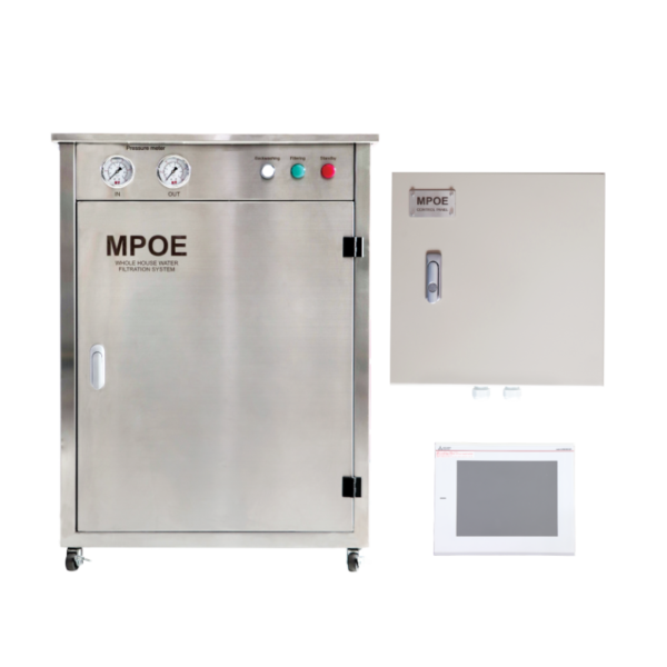 - Không giới hạn công suất lọc: Hệ thống lọc tổng MPOE không giới hạn công suất lọc. tuy nhiên, cần thay thế bộ lọc khi hệ thống thông báo khi hệ thống thông báo lưu lượng nước yếu hay bộ lọc sắp bị nghẹt (lưu lượng lọc <120 lít / phút).